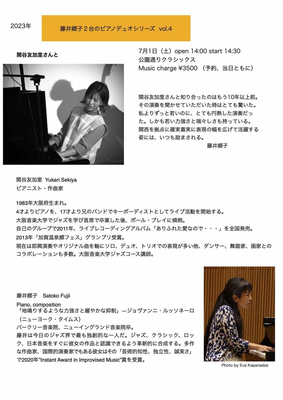 「藤井郷子2台のピアノデュオシリーズ vol.4」